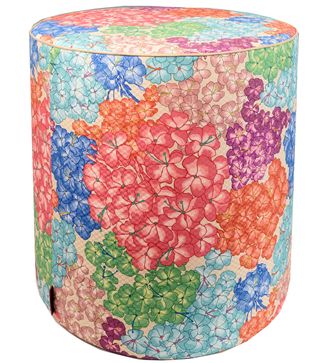 TAMARIND0 100 POUF SGABELLO OTTOMANA Fioriture rigogliose di gerani che sbocciano in toni di porcellana smaltata su intricati tessuti di cotone e lurex, Pouff sgabello sedia altezza 45cm diametro 45cm altezza 76% COTONE 20% LINO 4% Poliestere Lurex Sfoderabile, con cerniera, tessuto jacquard FLOREALE, a contatto col pavimento tessuto antimacchia muffa e resistente alla luce solare EUCLA Interno rigido in poliuretano espanso - Composizione: lino e cotone. - Modello: Tamarindo 100.