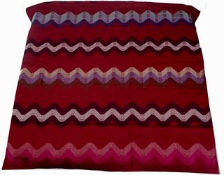 Copri cuscino decorativo 40x40 cm - senza imbottitura 100% cotone ricamato a scarto d'ago, con filato rayon irrestringibile. Inconfondibile colori Missoni Double face. Ogni foto illustra un lato della fodera. Uso; decorazone del letto o in salotto Il termine "scarto d'ago" si riferisce al fatto che ad intervalli desiderati si escludono dalla lavorazione (cioè si tengono in sospeso, si "scartano" temporaneamente) uno o più aghi. Se eseguita su tessuto rasato, si ottengono zone traforate o smagliature fatte apposta a scopo decorativo - Misure 40x40 cm.