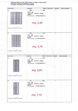 N. 5 persiane doppie e N. 1 singola in condizioni ottime.... (in allegato caratteristiche e misure)