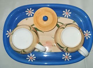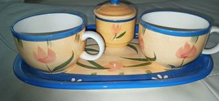 Servizio ceramica, colazione o thè, TET a TET, con vassoio( vedi descrizione completa in foto)