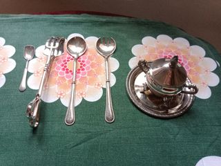 Posate e zuccheriera silver vintage.Per altre foto consultare il mio profilo. Non spedisco con UPS