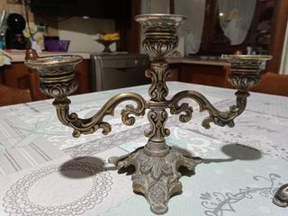 Candelabro antico tre braccia in ottone più cagnolino vintage.Non spedisco tramite UPS ma presenti altre modalità di spedizione