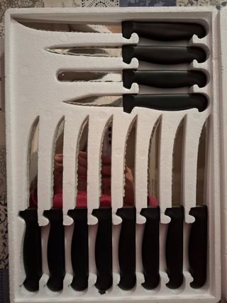 Utensile da cucina per tagliare arrosto ha sette regolari. - Struttura in metallo e manico in plastica. - Colore rosso e argento. La confezione è solo aperta, l'utensile si trova in condizioni come da foto, più che perfette.