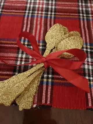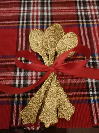 Set di 6 cucchiaini da dolce o da tè / caffè con un tocco festivo. - Decorazione glitterata dorata.