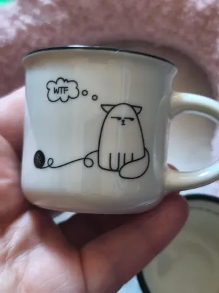 Set di due tazze da caffè espresso con simpatiche illustrazioni. - Design con gatto e cane. - Capacità 50 ml ciascuna (1.7 oz). - Ideali per un caffè speciale.