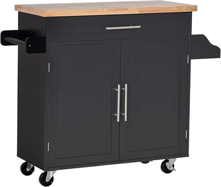 RISPARMIO DI SPAZIO: Hai troppi utensili e accessori che non sai dove riporre? Questa piccola isola da cucina è perfetta per mantenere tutto in ordine, grazie ai due cassetti, due armadietti, un porta canovacci e un portaspezie PERSONALIZZA IL TUO SPAZIO: Questo carrello da cucina ha due ripiani interni regolabili. Puoi facilmente modificare l'altezza in base alle tue necessità, poiché i ripiani possono essere bloccati a tre altezze TANTO SPAZIO DI LAVORO: Il piano in legno di gomma offre una finitura liscia e satinata e un ampio spazio. Offre uno spazio extra per la preparazione dei pasti senza occupare lo stesso spazio di un tavol