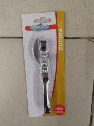 Utensile da cucina multifunzione per aprire lattine, bottiglie e tappi. - Design compatto e pratico. - Realizzato in metallo resistente.