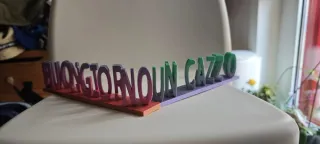 Scritta decorativa Buongiorno Un Cazzo reversibile. Un pezzo originale per dare un tocco di personalità. - Design a lettere tridimensionali. - Base di supporto inclusa. Colore rainbow
