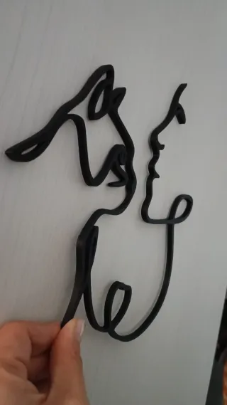 Elegante decorazione da parete in stile Line Art che raffigura un gatto e una donna. Un pezzo unico per aggiungere un tocco artistico alla tua casa. - Design moderno e minimalista. - Sagoma stilizzata in un unico tratto. - 23cm larghezza per 22 cm di altezza -realizzata con stampante 3d in pla