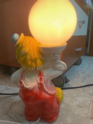 Lampada da tavolo a forma di clown, un pezzo unico che porta un tocco di allegria. - Design vintage anni '60. - Base e statua in pietra - Globo luminoso.