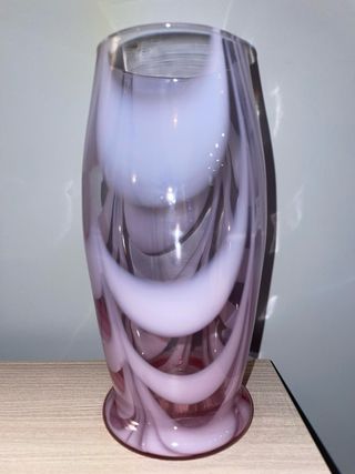 Elegante vaso in vetro con un bellissimo effetto sfumato che va dal trasparente al lilla. - Design moderno e sinuoso. - Base stabile.