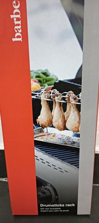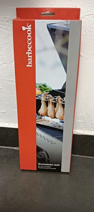 Supporto per cuocere cosce di pollo sulla griglia, BARBECOOK, in acciaio inossidabile, nuovo mai usato