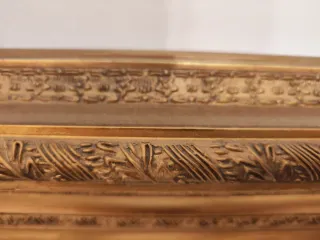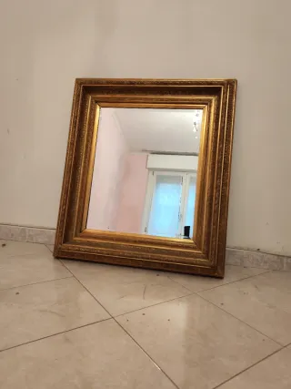 Elegante specchio con una cornice finemente lavorata. - Cornice in legno dorato. - Specchio in vetro. Cornice con specchio misure cornice 67 x 77 misure specchio 48 x 60 ritiro in loco