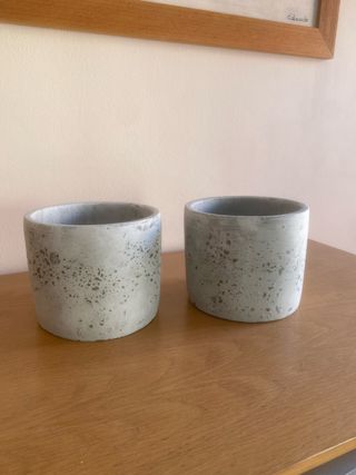 In vendita due vasi di IKEA, perfetti per le tue piante. Design moderno e minimalista. Finitura in pietra con tonalità grigia. Ideali per interni o esterni. Diametro 18 cm e altezza 15 cm. Peso totale 3,3 kg.