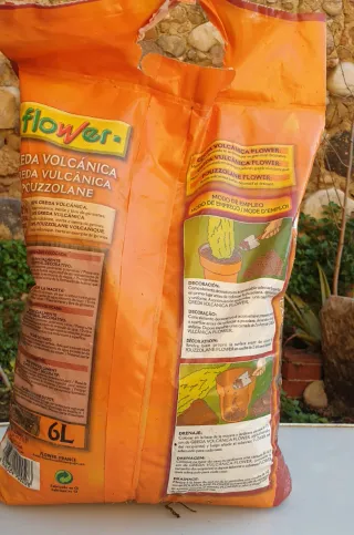 Sacchetto di pietra vulcanica del marchio Flower, ideale per decorare e drenare i vasi. È un prodotto 100% naturale. - Argilla vulcanica. - Puzolana. - Decora.