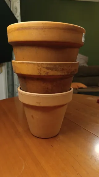 Set di tre vasi. Il più grande ha una capacità di 5,4 litri. Prezzo per i tre: 5€