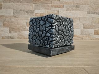 Vaso a tema con design in pietra. Vaso artigianale con design in pietra. Con rivestimento in rete di fibra e malta idrorepellente per una maggiore durabilità. Articolo realizzato interamente a mano. Prezzo per unità. Materiale in cemento. Finitura in tonalità grigie e argentate.