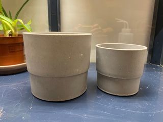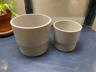 In vendita due vasi di IKEA, perfetti per le tue piante. Design moderno e minimalista. Finitura in pietra con tonalità grigia. Ideali per interni o esterni. Diametro 18 cm e altezza 15 cm. Peso totale 3,3 kg.
