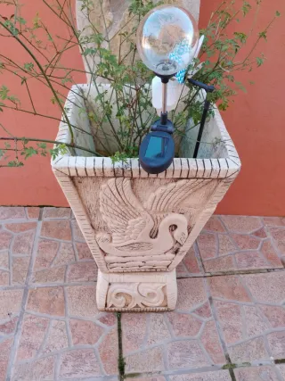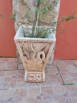 Vaso di pietra con un bel design di cigno intagliato nella parte frontale. Ideale per dare un tocco elegante al tuo giardino o terrazzo. Design con cigno e dettagli ornamentali. Materiale di pietra resistente.
