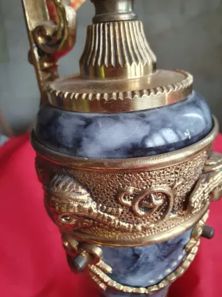 Elegante vaso d'argento con dettagli in pietra. Il segno distintivo è la marca che indica l'argento, è stato graffiato con forza e testato con acido per confermare l'argento, il colore rossastro indica che è argento. Non accetto resi a causa dello stato del vaso, e poiché è già stato testato ed è argento.