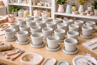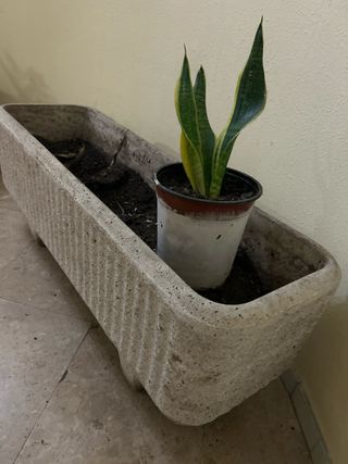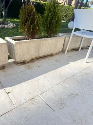 Set di quattro vasi in pietra con un design elegante. Colore beige e grigio. Materiale in pietra resistente. Ognuno costa 13 euro. Se acquisti tutti e 4, te li vendo a 49€. Ritiro a Puertollano.