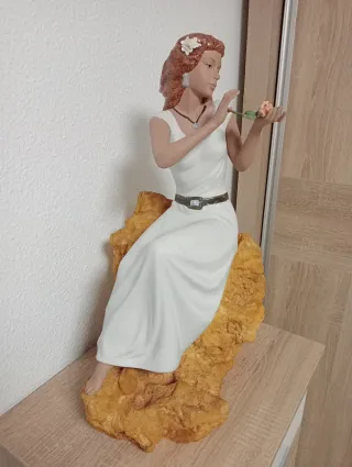 Statuetta in porcellana di una donna seduta su una roccia. In perfette condizioni, nessuna rottura. Per qualsiasi domanda, non esitate a consultare. Preferibile il ritiro in loco a causa del peso della statuetta. Design delicato e dettagliato. Base con texture di pietra.