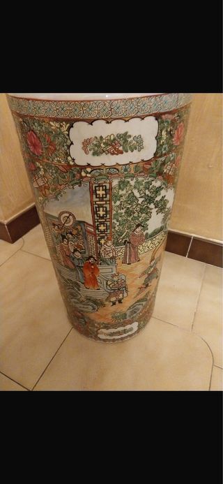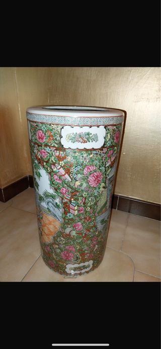 Elegante vaso in ceramica con una decorazione floreale vivace. - Motivi floreali e paesaggistici. - Bordi decorati con motivi geometrici.