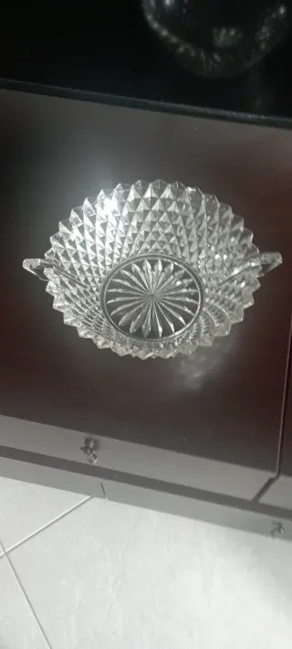 centrotavola in vetro - Design lavorato con motivi a rombi. - Base centrale con decorazione a raggiera. - Manici laterali per una facile presa.
