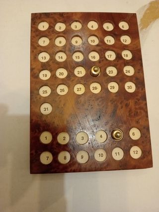 Calendario perpetuo da scrivania in radica trattata e due segnalini in Ottone