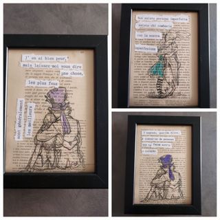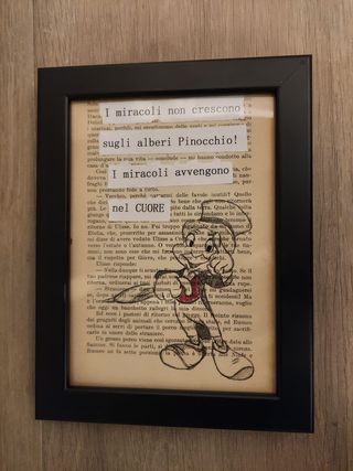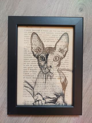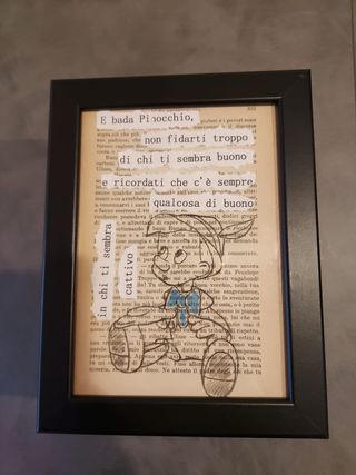 Se vuoi un quadretto personalizzato scrivimi che creo per te un quadretto originale!! Il foglio che viene usato è preso da un vecchio libro al momento l'Odissea di Omero 1937 I quadri vengono realizzati con tavoletta grafica e poi rifiniti con matita. Dimensione 13x18 compresa la cornice . Ottimo come regalo,regalo di Natale bomboniera per arredare casa o semplicemente per chi vuole il suo amico raffigurato in un quadretto..