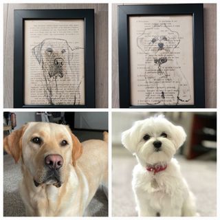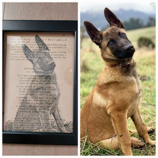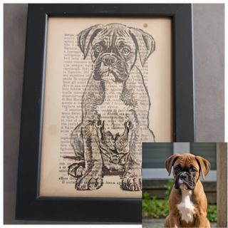 Mandami la foto del tuo animale e io creo per te un quadretto originale!! Il foglio che viene usato è preso da un vecchio libro al momento l'Odissea di Omero 1937 I quadri vengono realizzati con tavoletta grafica e poi rifiniti con matita. Dimensione 13x18 compresa la cornice . Ottimo come regalo,regalo di Natale bomboniera per arredare casa o semplicemente per chi vuole il suo amico raffigurato in un quadretto..
