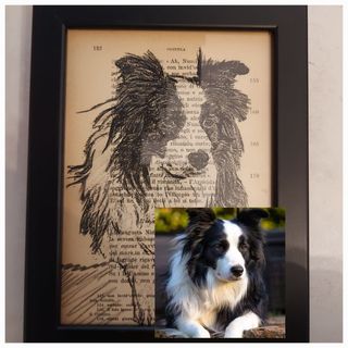Mandami la foto del tuo animale e io creo per te un quadretto originale!! Il foglio che viene usato è preso da un vecchio libro al momento l'Odissea di Omero 1937 I quadri vengono realizzati con tavoletta grafica e poi rifiniti con matita. Dimensione 13x18 compresa la cornice. Ottimo come regalo,regalo di Natale bomboniera per arredare casa o semplicemente per chi vuole il suo amico raffigurato in un quadretto..