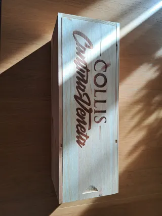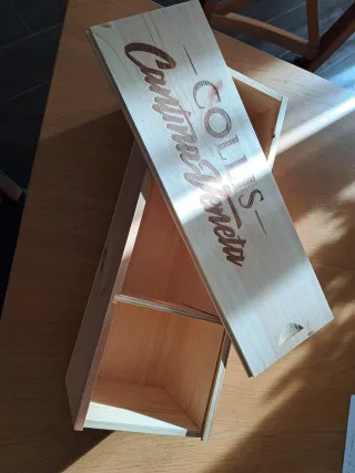 Elegante scatola in legno, perfetta per conservare o trasportare bottiglie o da usare come complemento di arredo - Materiale: legno naturale. - Colore: beige e marrone.