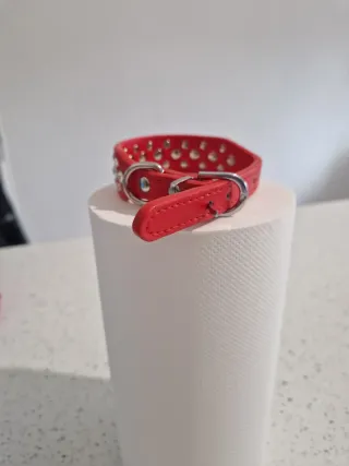 Elegante collare per cani decorato con strass scintillanti. Realizzato in materiale resistente e dal design accattivante. - Decorazione con strass. - Chiusura a fibbia. Nuovo mai usato. Taglia XS regolabile da 21,5 cm a 31,5 cm
