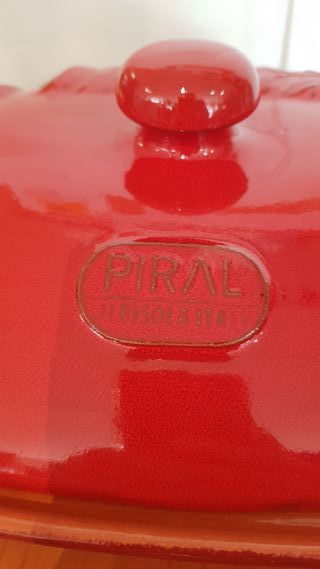 Bellissimo cuoci arrosto Piral, perfetto per la tua cucina. - Design ovale con coperchio decorato. - Realizzato in terracotta di alta qualità. - Colore rosso vivace.