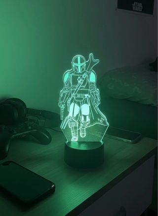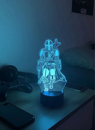 Lampada effetto 3D a luce LED. The Mandalorian. Include base, cavetto USB e telecomando per cambiare il colore