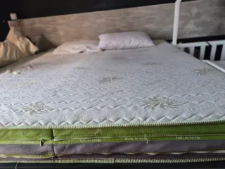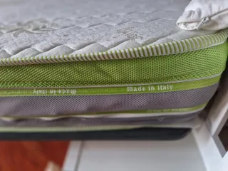 Materasso matrimoniale in tessuto, con un design moderno e confortevole. - Rivestimento trapuntato con motivo floreale. - Bordi rinforzati per una maggiore durata. - Etichetta Made in Italy visibile.