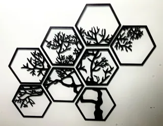 Set di 7 moduli decorativi geometrici a forma esagonale con un design ispirato a un bonsai. - Design Bonsai Zen - Set da 7 pezzi - Forma esagonale