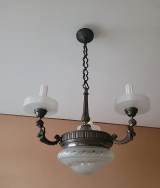 Lampadario Antico Bronzo e Vetro
