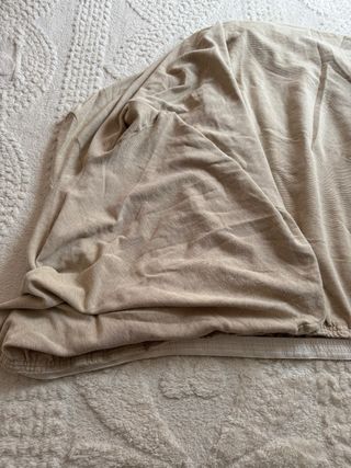 Copridivano per divano a 2 posti, in tessuto color beige. Presenta delle macchie di smalto. - Adatto per divani a due posti. - Tessuto morbido al tatto.