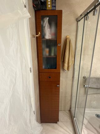 Vendo per trasloco. Mobile in legno con metà della porta in vetro.