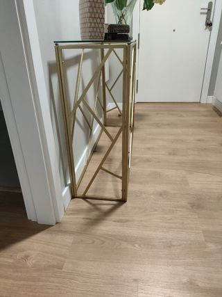 Elegant console per ingresso con design moderno, acquistata meno di due anni fa da Maison du Monde, senza graffi o danni. Struttura in legno con dettagli in metallo. Finitura in tonalità marroni e nere.