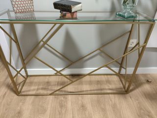 Tavolo consolle in metallo nero e vetro con scaffale a 2 livelli e gambe regolabili. Ideale per l'ingresso, il corridoio o qualsiasi ambiente della casa. Misure: Larghezza: 100 cm, Altezza: 80 cm, Profondità: 35 cm. Acquistato da Maison du Monde, non utilizzato, consegnato nella sua scatola pronto per il montaggio. Opzione di consegna montata per 10€ in più. Consegna a mano nella zona di Rondilla, Valladolid.