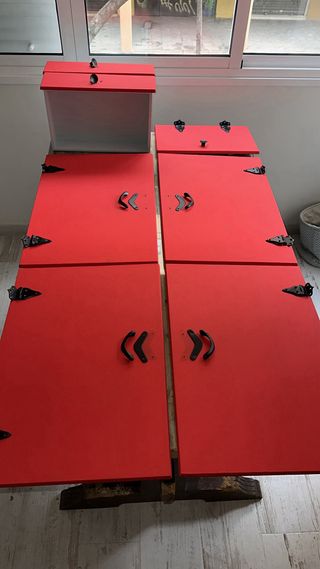 Espositore con vari livelli per organizzare e mostrare carte, fogli... Tutto ciò che ti viene in mente. Antico, con segni d'uso ma in buone condizioni. Grande cassetto nel livello inferiore, abbiamo dovuto aggiungere due rinforzi ai materiali. Già smontato, pronto per il trasporto. Disponiamo di veicolo per il trasporto (15€/100km)