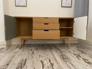 Si vende per trasloco. Solo ritiro a domicilio. ATTENZIONE: non passa nell'ascensore e deve essere imballato per le scale con 11 piani. Mobile in stile scandinavo vintage, un pezzo unico per la tua casa. - Design di metà secolo. - Gambe coniche. - Tre cassetti a sinistra. - Porte con maniglie integrate.