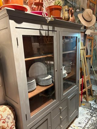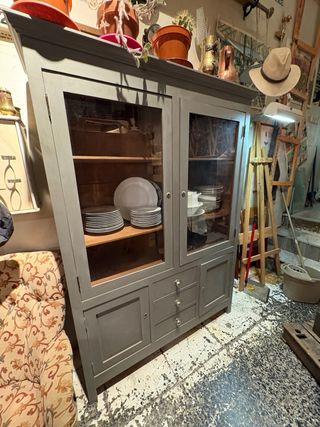 Alacena vintage restaurata in legno e vetro
