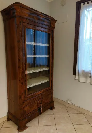 Elegante vetrinetta cristalliera d'epoca, restaurata con cura. Perfetta per esporre oggetti preziosi o da collezione. - Struttura in legno massello finemente lavorato. - Ante con pannelli in vetro trasparente. - Ripiani interni in legno. - Dettagli decorativi classici. Epoca 1860/80 completamente restaurato pronto da essere messo in casa l'oggetto si trova a Merate in via spiga n1 contattatemi sulmiotelwhatsup 329 1670765 grazie saluti
