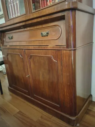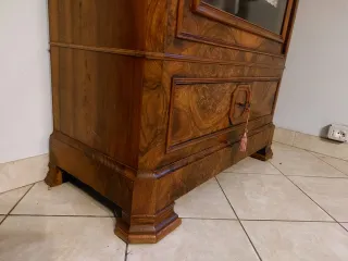 Elegante vetrinetta con credenza, un mobile d'epoca che aggiunge un tocco di classe alla tua casa. - Realizzata in legno di noce. - Ante in vetro per esporre oggetti. - Ampio spazio contenitivo nella parte inferiore. Misure esatte su richiesta.