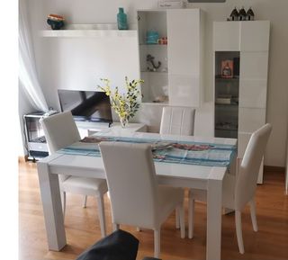 Vendo tavolo estraibile con 6 sedie, vetrina, mobile a 2 ante, vetrinetta, portatelevisore, ripiano. Nuovi. Acquistabili anche singolarmente Smontaggio e trasporto a carico dell'acquirente