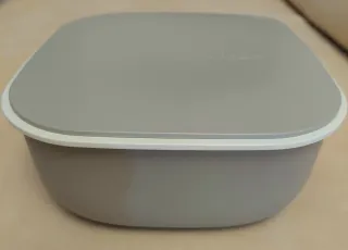 Contenitore Guzzini quadrato con coperchio, in materiale plastico riciclato, 2 lt. Ideale per conservare alimenti. - Colore grigio tortora con bordo bianco. - Realizzato in plastica resistente. Nuovo senza scatola